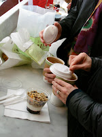 Each day starts somewhere. This one began at an outpost of Bouchon Bakery. There was rich, plain yogurt with granola and blueberry compote, a chocolate cherry walnut scone that was surprisingly sophisticated and not at all cloying, and a savory, salty, cheese, chive and bacon biscuit. And coffee, lots and lots of coffee.